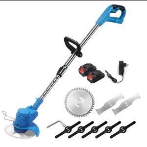 Three Types of Blades: The cordless grass cutter comes with three different types of blades which can help you with all kinds of complex jobs. Plastic blades are suitable for trimming newly grown grass, flat steel blades are suitable for cutting lawns, twigs and vines, and circular saw blades are suitable for cutting branches and shrubs.